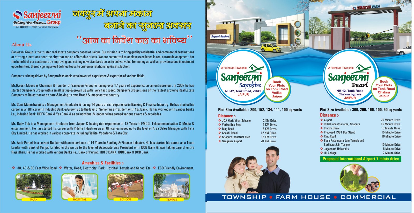Sanjeevni Pearl (Residential Plots In Jaipur) is located on NH-12, Tonk Road towards south of Jaipur. South Jaipur is developing rapidly with many mega projects, satellite towns, the biggest Ring Road & other infrastructure projects of repute. All these developmental works are bound to make this part of the Pink City the future posh area as being the case of the south of Delhi. Pink city, the capital of Rajasthan is also the home to most of the important government establishment as well and provides easy access to renowned Schools, Colleges, hospitals, business enterprises, markets and other facilities along with good law and other conditions. in this township we have provide the basic amenities like 30,40 & 60 feet wide road ,water, road, electricity ,park, hospital, temple and school etc.